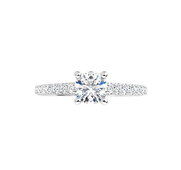 Zásnubný prsteň z bieleho zlata krásne žiari vďaka dominantnému kameňu podľa vášho výberu, ktorý dopĺňa ďalších 18 drobných kamienkov. Tie sú osadené do polovice jeho obvodu. Zdobí ho naviac romantický detail v tvare ležiacej osmičky, znak nekonečna, ktorý symbolizuje nikdy nekončiacu lásku. V ponuke ho nájdete tiež v klasickom žltom alebo v romantickom ružovom zlate a na požiadanie doňho vieme osadiť aj inú veľkosť diamantu alebo zirkónu. Presne podľa vašich predstáv.